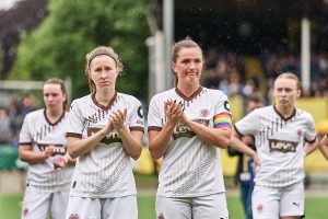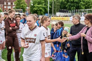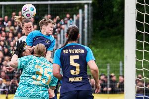 Über 50 Minuten spielte FC St. Pauli nun in Unterzahl. SC Victoria erkannte die Chance und spielte noch mehr auf Konter. Konnte das aber auch, weil sie gute, schnelle Leute hat. Jana Bothmann gelang so kurz nach der Halbzeit der Ausgleich und noch mal Celina Witt schlenzte kunstvoll den Ball in der 79. über Tara Zimmermann zur vielumjubelten Führung.