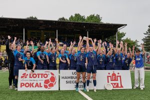 Danke auch an die offiziell 4288 Zuschauer:innen, die zumindest auf braun-weißer Seite für eine dem Pokalfinale würdige Stimmung sorgten. Der Hamburger Fussballverband hat es ja schon nicht mal geschafft, den letztjährigen Erfolg der FC St. Pauli 1. Frauen auf dem Pokal zu vermerken.