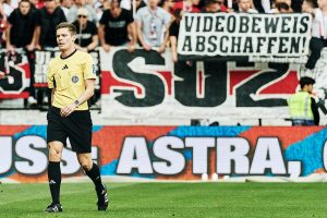 Nicht verdient war die Schiedsrichterleistung. Die rechtfertigt zwar keine Becherwürfe, aber aufregen darf man sich über Florian Exner auf jeden Fall. Siebe Van der Heyden bekommt im Fallen den Ball an die Hand. Das ist unstrittig. Wohin soll er während des Flugs Richtung Rasen seine Hand den nehmen? Schwierige Kiste. Wenn das beim Spiel FC Bayern gegen Bayer Leverkusen passiert wäre, würde Fussballdeutschland vermutlich die nächsten 10 Tage diskutieren. So werden wir vermutlich nie erfahren, was der Spieler hier hätte anders machen sollen.