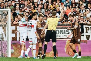Der beste braun-weiße Spieler des Tages Nikola Vasilj regt sich in der 96. Minute über Zeitspiel der Stuttgarter auf und kassiert dafür eine gelbe Karte. Als er das mit einem „Daumen hoch“ quittiert, bekommt er direkt die zweite gelbe Karte und darf ebenfalls vorzeitig Duschen gehen. Für mich die mit Abstand größte Fehlentscheidung eines Schiedsrichters in dieser Bundesligasaison. Auch hier: einfach mal vorstellen, Manuel Neuer wäre so vom Platz geschickt worden.