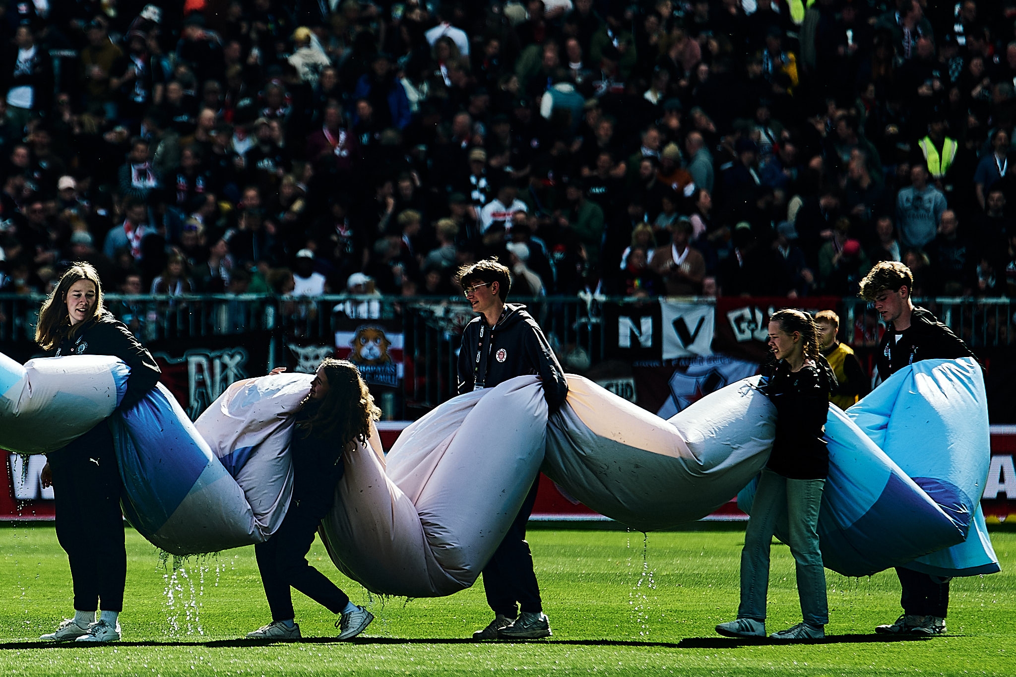 Wunderbar auch zu erleben, wie relaxed und schön ein Platzsturm ablaufen kann. Wirklich eine angenehme Atmosphäre auf dem Platz. Ich hätte mir gewünscht, wenn sich die Mannschaft etwas schneller nach dem Spielende den Fans zeigt. Kann aber auch nachvollziehen, dass erstmal alle Spieler duschen wollten – und Trainer Alexander Blessin hatte auch noch eine Pressekonferenz abzuhalten. Das dauert eben…