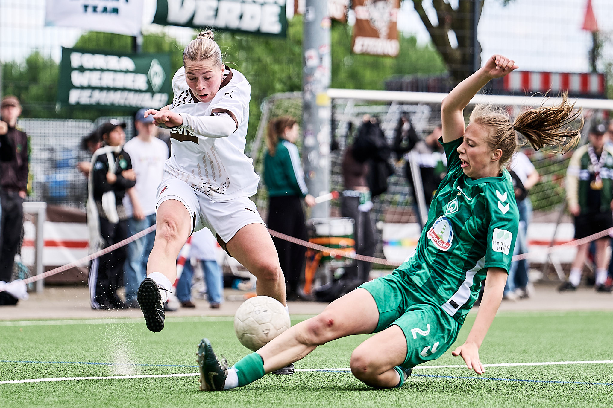 Wie auch schon gestern ist das Ergebnis 2:0, aber diesmal gewinnen die richtigen Farben. Wobei bei einem Gegner Werder Bremen sowieso die richtigen Farben gewinnen. Jedenfalls gab es bei der letzten Partie der Saison 2024/25 in der Frauen Regionalliga Nord einen würdigen Rahmen und eine wunderbare Stimmung in der Feldarena.