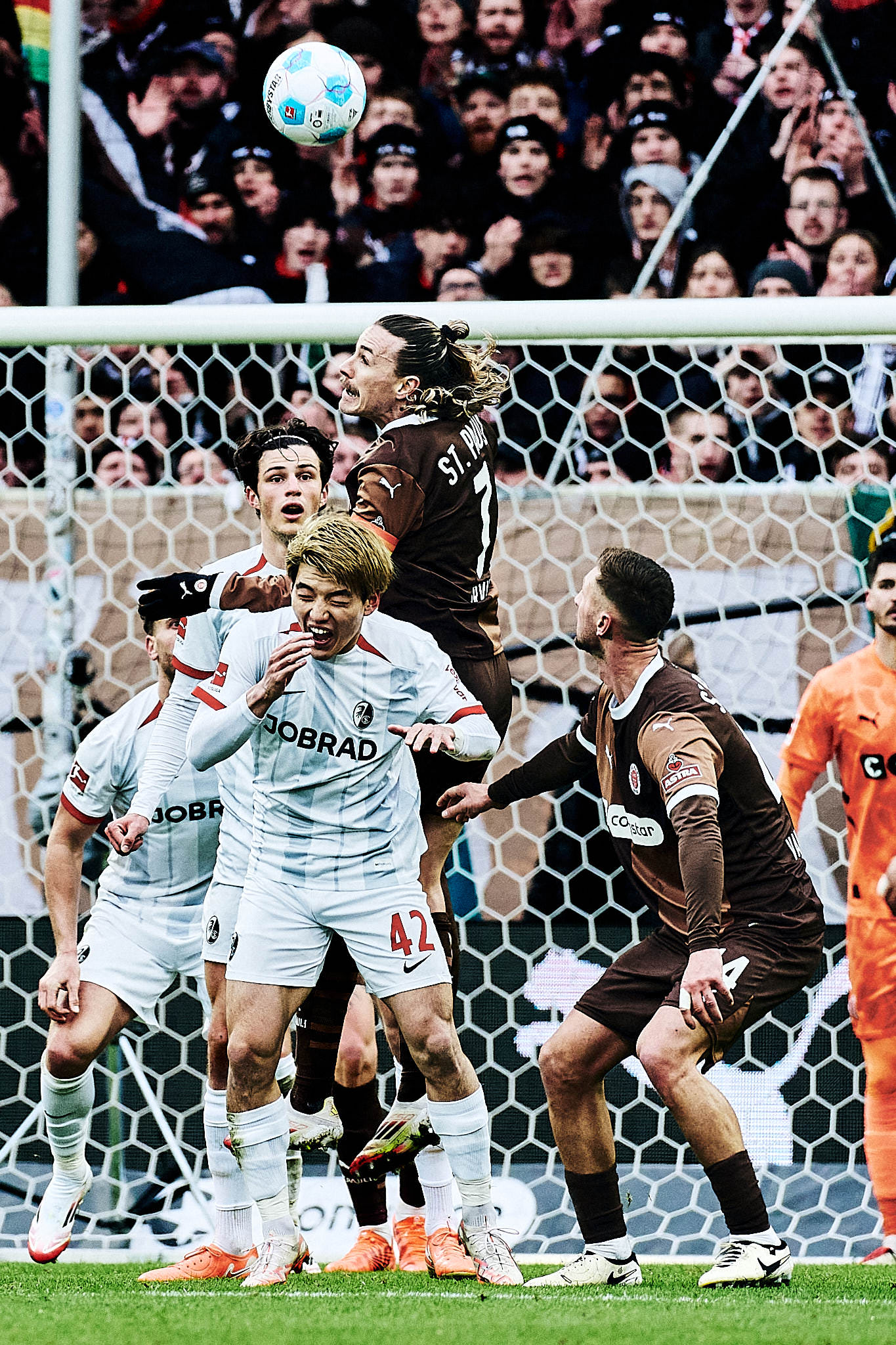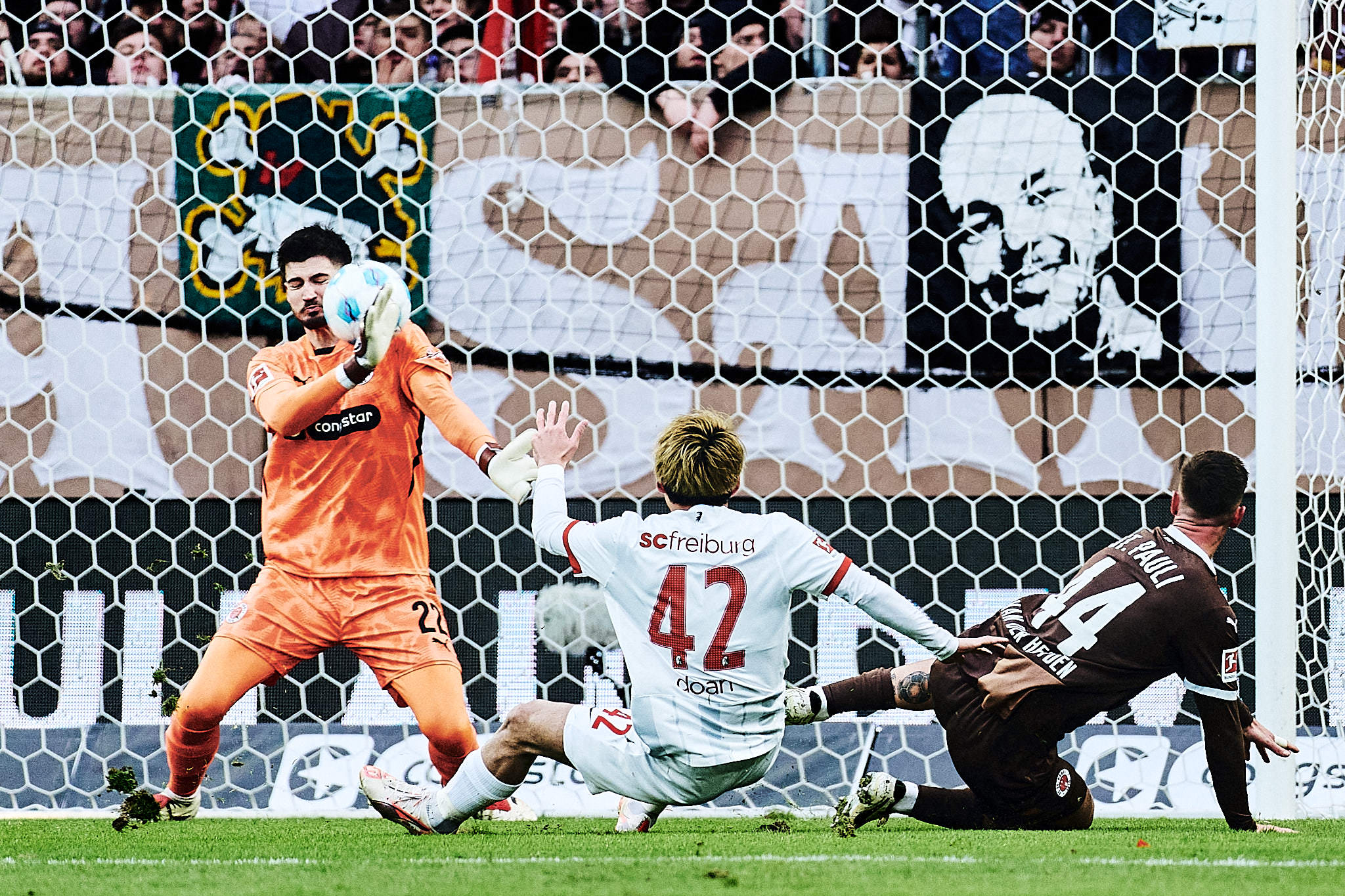 Erstligareif war beim FC St. Pauli einzig Nikola Vasilj. Der Torwart hielt, was es zu halten gab. Auch wenn der Strafstoß von Grifo schlecht geschossen war, musst du den trotzdem erstmal halten. James Sands hat mir auch sehr gut heute gefallen. Allerdings verletzte er sich mit der letzten Aktion offensichtlich schwer. Irgendwie hat er wohl sein Bein überstreckt und ist dann im Rasen hängen geblieben. So sieht es zumindest auf meinen Fotos aus. Ich wünsche ihm baldige Genesung.